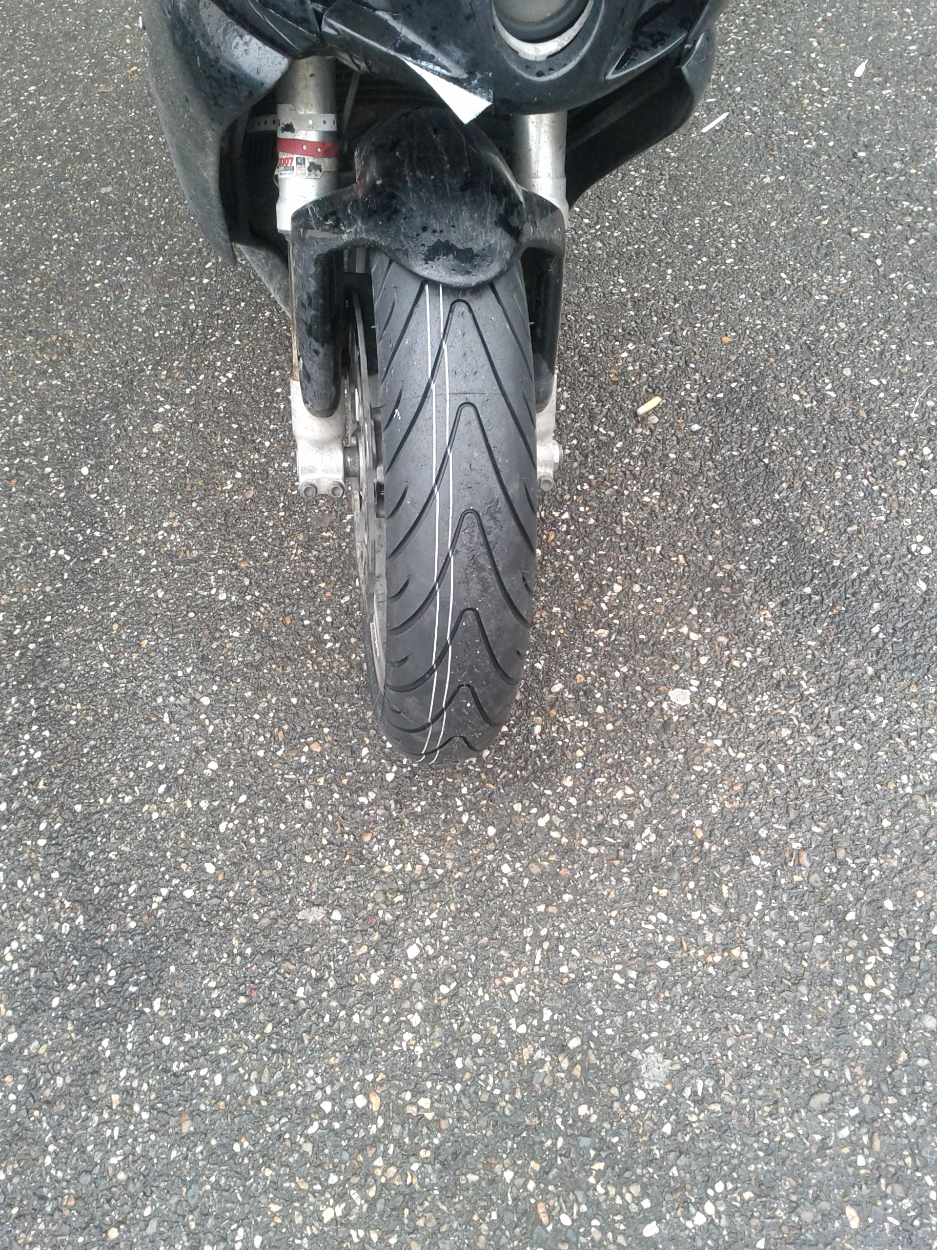 Dat wordt overigens één van minst grote zorgen voor vandaag. Ook maar een bandenboer vinden, want ik vond het gisteren maar erg glibberig! Het is allemaal goed gegaan, en van idiote glijpartijen was geen sprake, maar stabiel was het allerminst. Op de zijkanten van de voorband zit op sommige stukken ook geen profiel meer. Ik heb wel eens banden anders afgesleten gezien 🙂